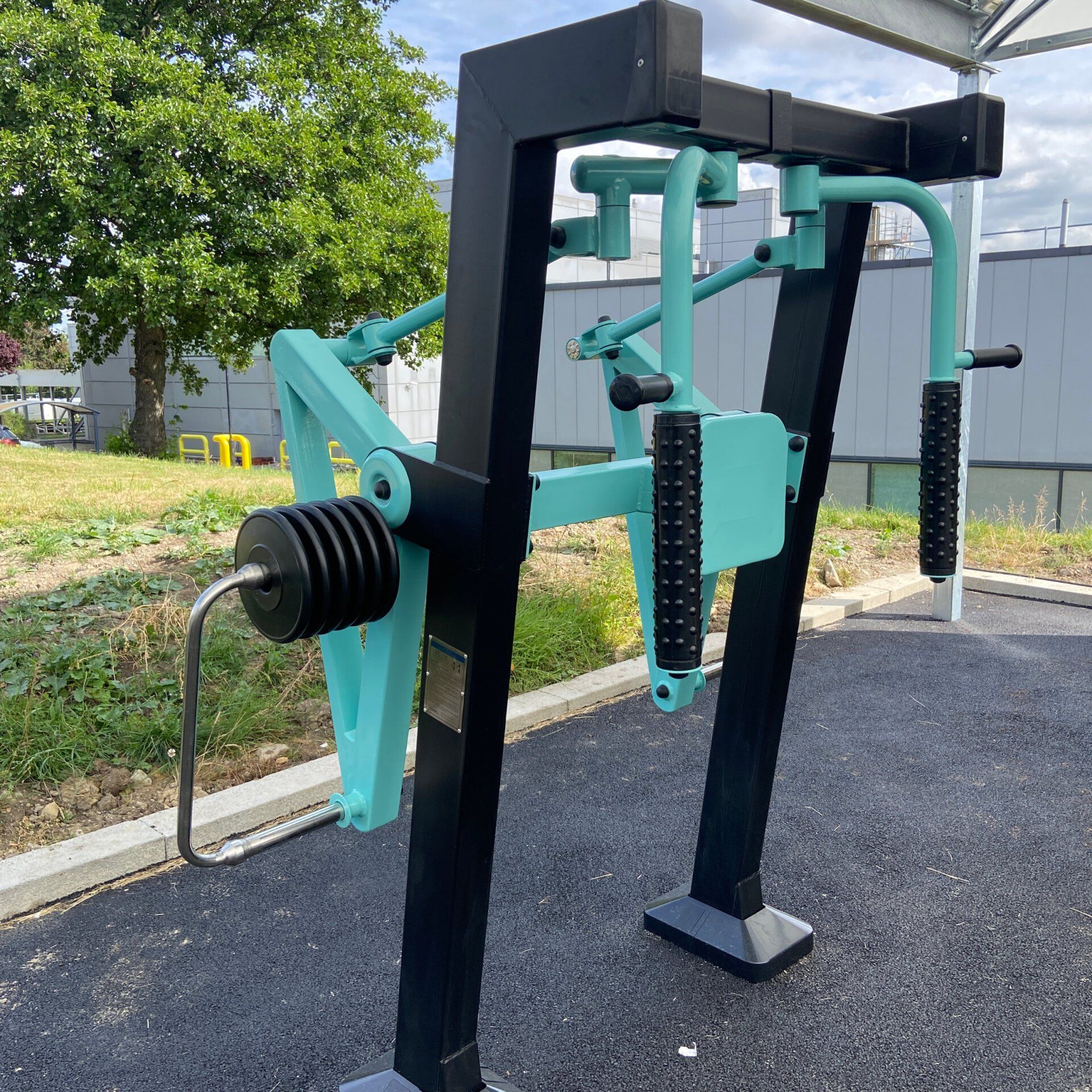 The park contains 8 pieces of Optifit Strive Outdoor Variable Load strength equipment, a 6 station Element fitness calisthenics rig, all outdoor equipment was finished in custom colours specifications to White Rose Park branding. The park is housed under a 130 m2 barrel vaulted canopy that was supplied with a 25 year warranty.